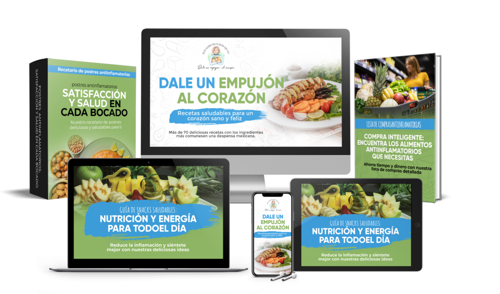 Permíteme presentarte ” Un empujón a tu corazón”, el recetario que te ayudara a reducir la inflamación de tu cuerpo. Este es mucho más que solo un libro de recetas; es una guía completa para transformar tu salud y bienestar.